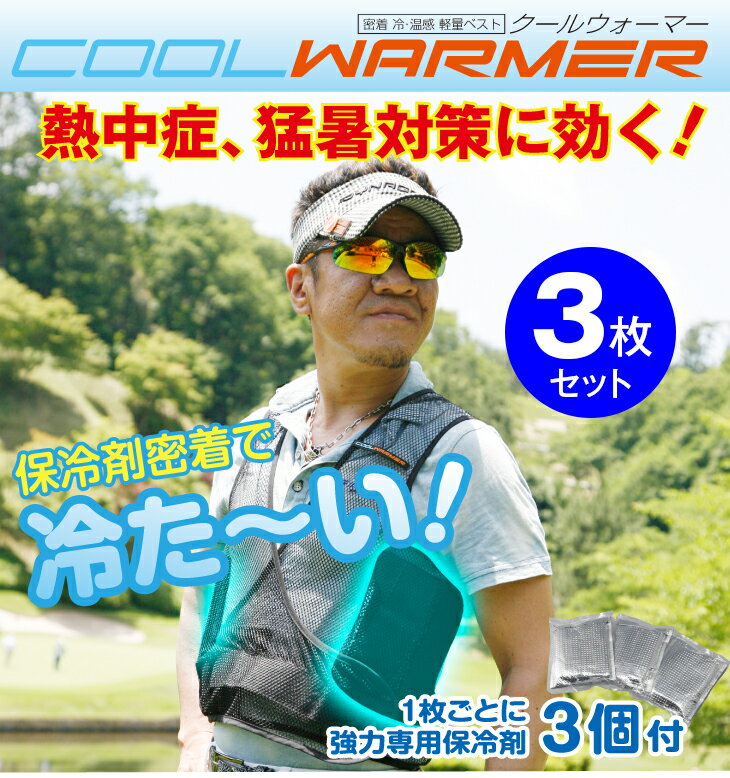 暑さ対策 熱中症予防 COOL WARMER クールウォーマー 3枚セット 保冷剤付き クールベスト 軽量メッシュ インナー ウェア 薄手 作業着 釣り フィッシング 農作業 真夏日 猛暑 冷感 ひんやり 涼しい 気持ち良い 夏 冷たい スポーツ ゴルフ 安い
